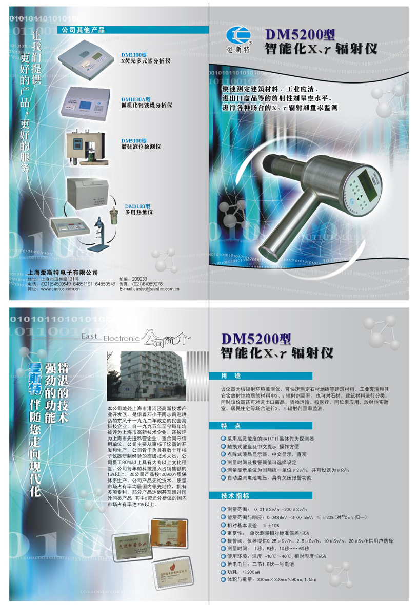 DM5200型輻射儀是一種環(huán)境監(jiān)測(cè)用χ-γ輻射劑量率測(cè)定儀,廣泛用于建筑材料、進(jìn)出口商品、運(yùn)輸物品、核醫(yī)療、同位素應(yīng)用的等需要測(cè)量放射性劑量率水平的場(chǎng)合。a.測(cè)量范圍: 0.01μSv/h~200μSv/h,b.能量范圍與響應(yīng):0.048MeV~3.00MeV≤±20%(對(duì)137Csγ歸一), c.相對(duì)基本誤差:≤±10%,d.重復(fù)性: 單次測(cè)量相對(duì)標(biāo)準(zhǔn)偏差≤5%,e.測(cè)量精度: 以置信度95%時(shí),測(cè)量時(shí)間15秒時(shí)一次讀數(shù)≤±10%.
