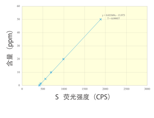 用已知含量的7個(gè)含S樣品對(duì)儀器進(jìn)行校準(zhǔn),得圖7的工作曲線。