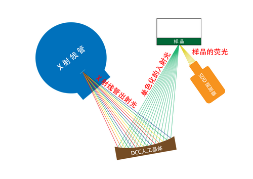 單色激發(fā)能量色散X射線熒光(Monochromatic Excitation Beam Energy Dispersive X-Ray Fluorescence)分析技術(shù),就是采用光學器件將X射線光管出射譜單色化,進而使得熒光光譜的連續(xù)散射背景極大地降低,同時盡可能少的降低甚至于可能的話增加所需激發(fā)X射線的單色化的線或窄能量帶的強度,從而大大降低了檢出限。相比傳統(tǒng)的EDXRF降低了1至2個數(shù)量級,相比大功率(如4kw)的WDXRF也更低。
